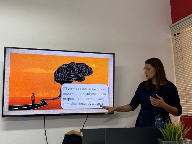 Se ejecutó una capacitación sobre el manejo del estrés laboral, en las instalaciones de Kiwa Dominicana, con la participación de todo el equipo y la orientación de una psicóloga experta en el tema. Durante la sesión, se abordaron temas fundamentales, como qué es el estrés, los factores críticos que lo desencadenan y cómo identificarlos en el entorno laboral. La capacitación no solo fue teórica, sino que incluyó prácticas de relajación y ejercicios reflexivos para fomentar el autoconocimiento. Se hizo hincapié en la importancia de la salud emocional y en cómo el estrés puede afectarla. Además, se exploró el síndrome del burnout, proporcionando herramientas prácticas para prevenirlo y abordar los desafíos sociales relacionados con la salud mental en el ámbito laboral.