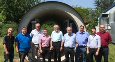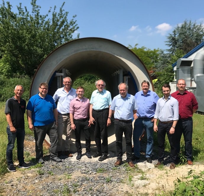 (v. l. n. r.: Michael Hesse, BPA GmbH; Adrian Pflieger, BPA GmbH; Prof. Dr. Frank Heimbecher, Kiwa GmbH/FH Münster; Chris Behr, BPA GmbH; Prof. Dr. Alfred Haack, STUVA e. V.; Dominik Kessler, STUVAtec GmbH; Dr. Knut Herrmann, MPA Braunschweig; Ulli Heinlein, TH Nürnberg; Matthias Käsekamp, Kiwa GmbH)