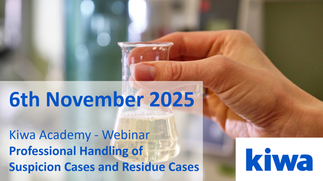 We are pleased to offer Kiwa Academy webinars this year on the topic of "Professional Handling of Suspicion Cases and Residue Cases." The webinars will take placefrom π 10:00 am to approximately 12:45 pm CEU on the following date: