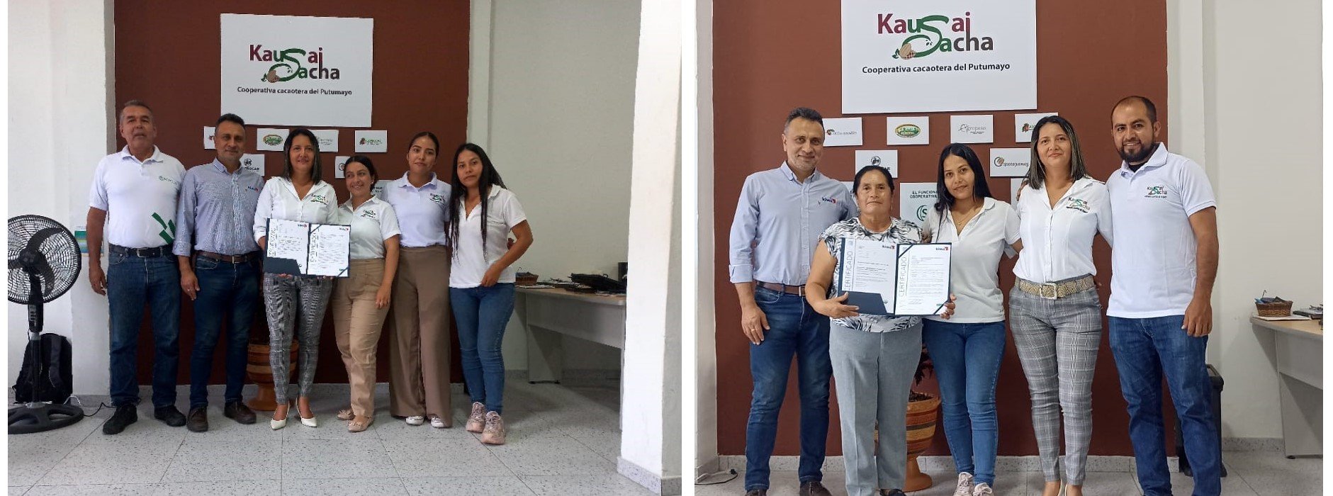Kausai Sacha, la cooperativa cacaotera más importante de Putumayo fue crucial en este proceso de certificación que se prolongó por varios meses y que hoy, 4 de octubre de 2024, fue entregado en las inmediaciones de la sede de la organización. Sobre esto, James Andrade, presidente del Concejo de administración de Kausai Sacha afirmó que: “estamos muy contentos por poder llevar nuestro producto a nuevos nichos de mercado, dándole un valor agregado a lo que hacen nuestras familias. Esto es el resultado de las actividades que realizamos promoviendo el cuidado del medio ambiente y el mejoramiento de la calidad de vida de nuestros productores. Agradecemos a SOCODEVI, a Canadá y a Gran Tierra Energy por apoyarnos en todo este proceso.”