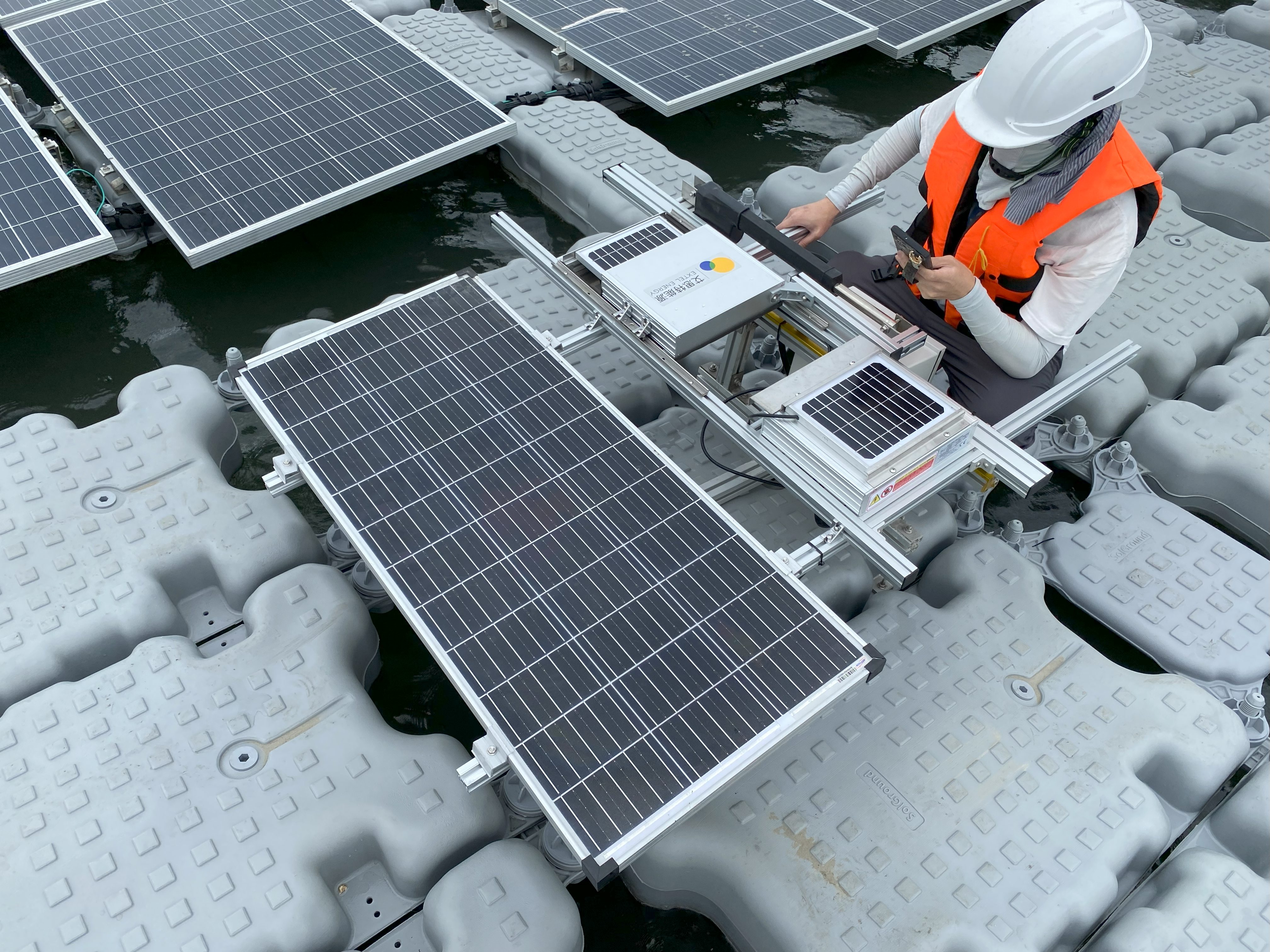 Kiwa ExTEL technicians conducted module performance testing and data monitoring at the floating solar power plant to ensure stable system operation and improve power generation efficiency.