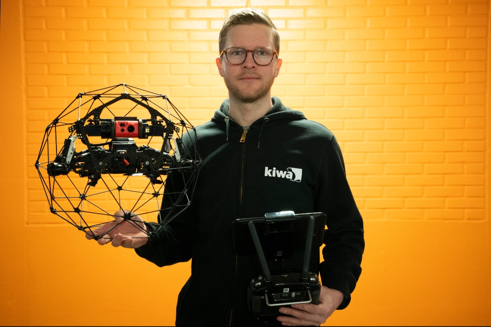 The drone Emil and the team use for indoor inspections is called the Elios 2, made by Swiss manufacturer Flyability. In the early days of his work with drones, Kiwa had found Flyability online and saw they had a special drone for use indoors. He contacted them and joined the Product Advisory Board, which is an ongoing collaboration. Over the years, Kiwa has tested prototypes and provided feedback on various aspects of the technology.