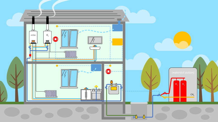 The Dutch government wants all houses in The Netherlands to switch off natural gas before 2050. Because the existing gas network can be used for a hydrogen network, hydrogen is one of the options for replacing natural gas. The Hydrogen House is fully furnished as a private house, has a 100% hydrogen boiler, kitchen and meter cupboard. The use of hydrogen in the built environment is put into practice in the demo house.