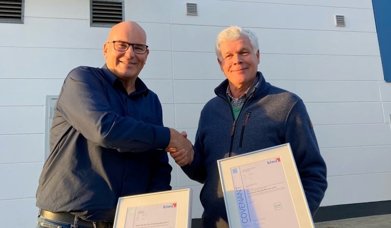 Additionally, during the presentation of the KiwaGreen certificate, the Covenant Cable Protection Pipe of recycled polyethylene (K110027/01) was also issued by Kiwa to the company. Many grid operators, including Dutch Liander, want to apply pipes of recycled polyethylene, provided they meet the standard requirements confirmed by Kiwa. The covenant shows that Hundhausen Kunststofftechnik meets all necessary Kiwa requirements regarding the polyethylene pipes they bring to the market.