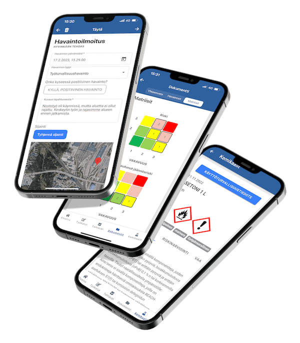 Kiwa Impactin toiminnallisuudet koostuvat kolmesta moduulista: Mobiiliraportointi, kemikaalirekisteri ja koulutusrekisteri. Nämä ominaisuudet muokkaantuvat juuri sinun yrityksesi tarpeiden ja prosessien mukaisesti.