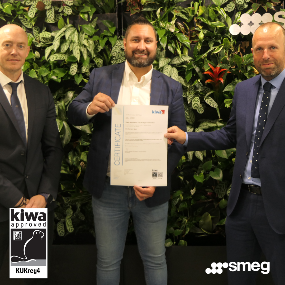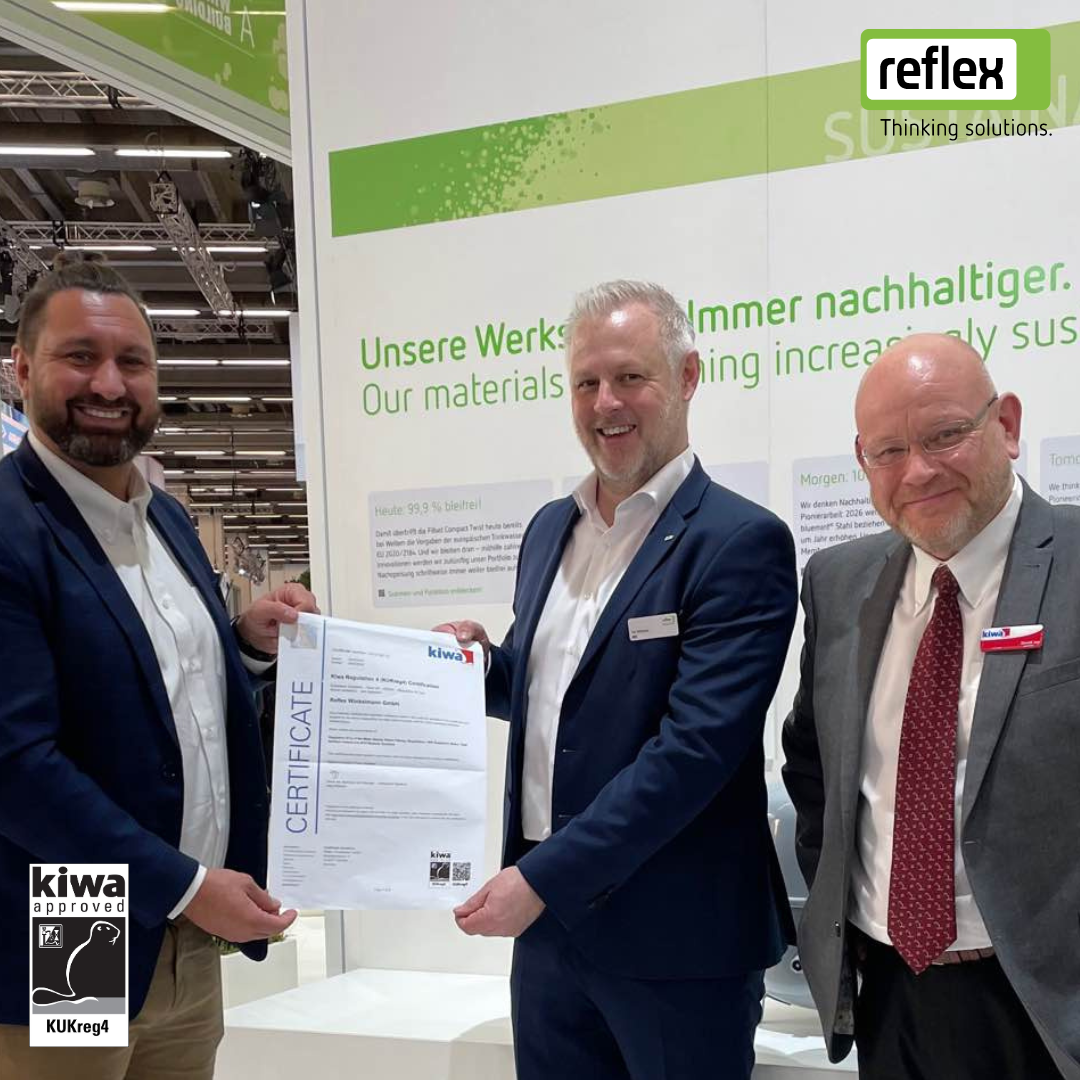 A showcase of KUKreg4 certificate presentations recognising successful product approval by Kiwa Watertec.