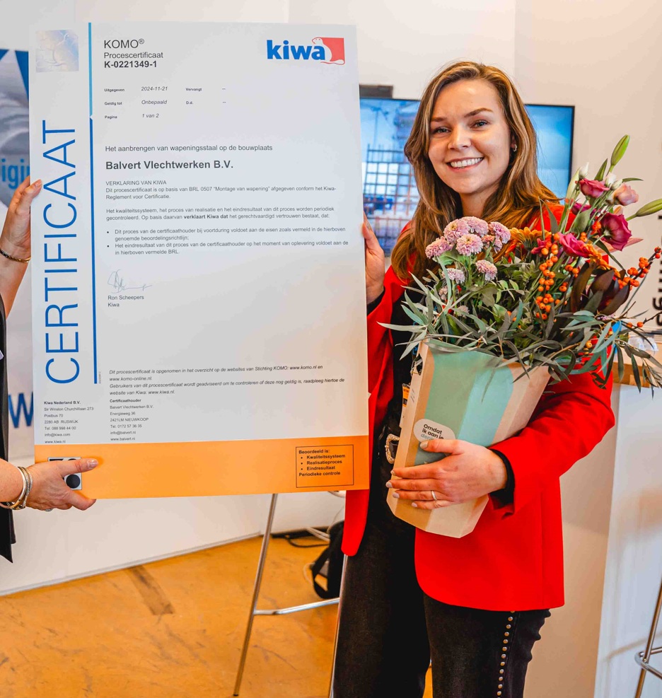 Voor Edwin betekent BRL 0507 een belangrijke verbreding van zijn werk. ‘Voorheen hield het voor mij op bij de wapeningcentrale. Nu zie ik ook wat er daarna met dat betonstaal gebeurt, hoe bedrijven daar duurzame constructies mee maken. Dat totaalplaatje maakt mij enthousiast.’ Balvert ziet die ketenbenadering als een versterking van het eigen kwaliteitssysteem. ‘We beschikken over een volgens de BRL 0503 KOMO-gecertificeerde wapeningcentrale, werken met staal dat voldoet aan BRL 0501 en zijn VCA*-gecertificeerd,” vertelt Laura. ‘Met het BRL 0507-certificaat is de kwaliteitsketen nu volledig geborgd. Bovendien zijn we trede 3-gecertificeerd op de Safety Culture Ladder, want veiligheid is bij ons een integraal onderdeel van kwaliteit.’