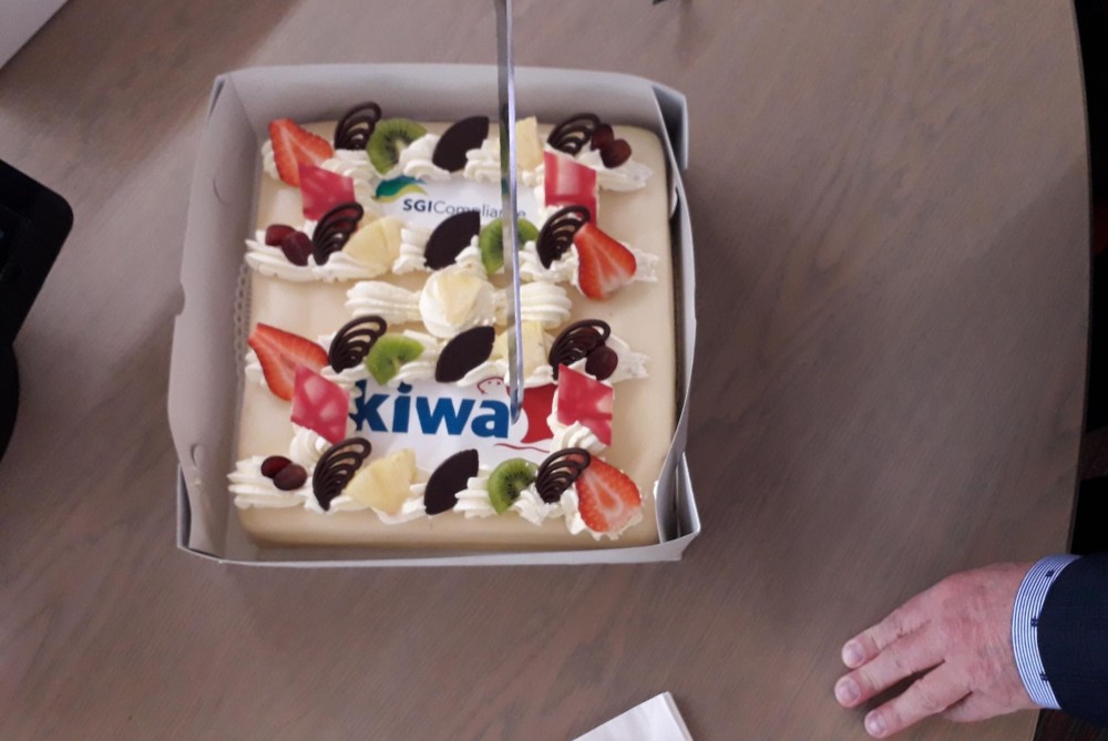 Tot voor kort opereerde het bedrijf nog onder de Kiwa-naam. Op 17 maart werden de nieuwe naam SGI Compliance en een nieuwe huisstijl gelanceerd; niet alleen in Nederland, maar ook in Noorwegen en België. Om de definitieve ‘knip’ tussen Kiwa en SGI Compliance officieel te maken, overhandigden SGI Compliance-directeur Nederland Fred Mast en business development-directeur Ruud Helderop de Kiwa-directie een taart met het oude Kiwa- en het nieuwe SGI Compliance-logo. Het aansnijden van de taart markeerde het ingaan van de nieuwe situatie.