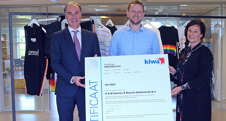 Fashion retailer H&M Netherlands has received the ISO 50001 certificate for energy management from Kiwa. This makes H&M the first Dutch non-food retailer with this important certification. The H&M group wants to want to contribute to sustainable solutions for the effects of the greenhouse effect and climate change and has met all ISO 50001 requirements. Paul Hesselink, CEO of Kiwa, has issued the ISO 50001 certificate to H&M.