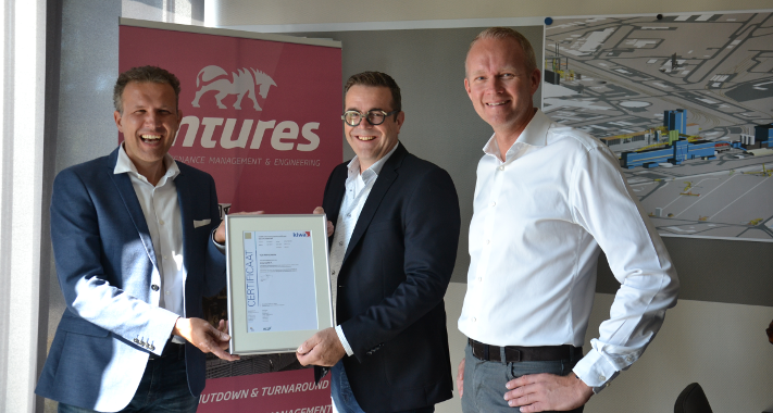 Om de verworven accreditatie niet ongemerkt voorbij te laten gaan, werd het eerste VCA 2017 certificaat op 3 augustus overhandigd aan de directie van Intures, Ron Spanjaard en Ronald Schavemaker, op het kantoor in Velsen-Noord.