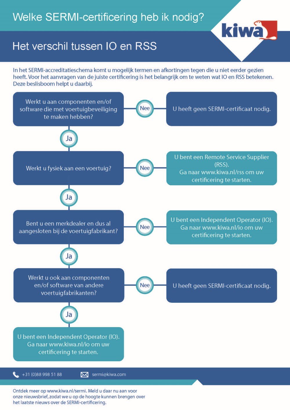 In het SERMI-accreditatieschema komt u mogelijk termen en afkortingen tegen die u niet eerder gezien heeft. Voor het aanvragen van de juiste certificering is het belangrijk om te weten wat IO en RSS betekenen. Deze beslisboom helpt u daarbij.