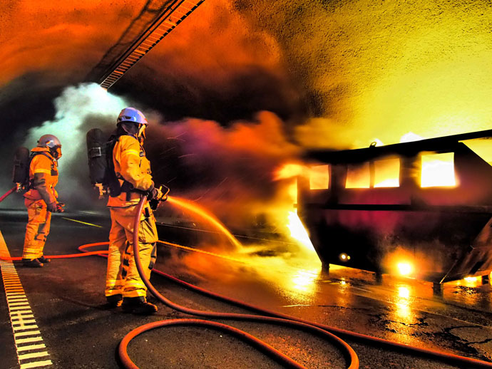 Det oppstår rundt 25 tunnelbranner i Norge hvert år, men statistisk sett er det for hver kilometer i tunnel færre ulykker enn ellers i trafikken. Det jobbes også med tiltak for å unngå farlige situasjoner, slik som justering av lys for å unngå at man blir trøtt når man kjører igjennom.