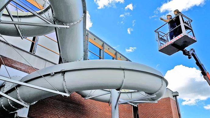 - Vi har sett at alle myndighetspålagte sikkerhetsrutiner blir fulgt. Vi har sett etter innvendige skader, kontrollert rengjøring, ankomst og utgang. Videre har vi sjekket alle utvendige bolter og fundamenter, og påsett at skilting, lyssetting og klarsignal er i god stand, slik at vannsklien er trygg å bruke for dem som besøker svømmehallen, sier Folstad.