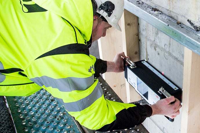 - En stor fordel med denne metoden er at vi kan presentere testresultatet umiddelbart på stedet. Resultatene kommer i form av en komplett 3D-modell av objektet, hvor eventuelle reflektorer kan målsettes. I de tilfellene det ikke gjennomføres en fullstendig kontroll kan rapporter inneholde beskrivende skjermbilder som identifiserer reflektorer i betongen, sier Meland.