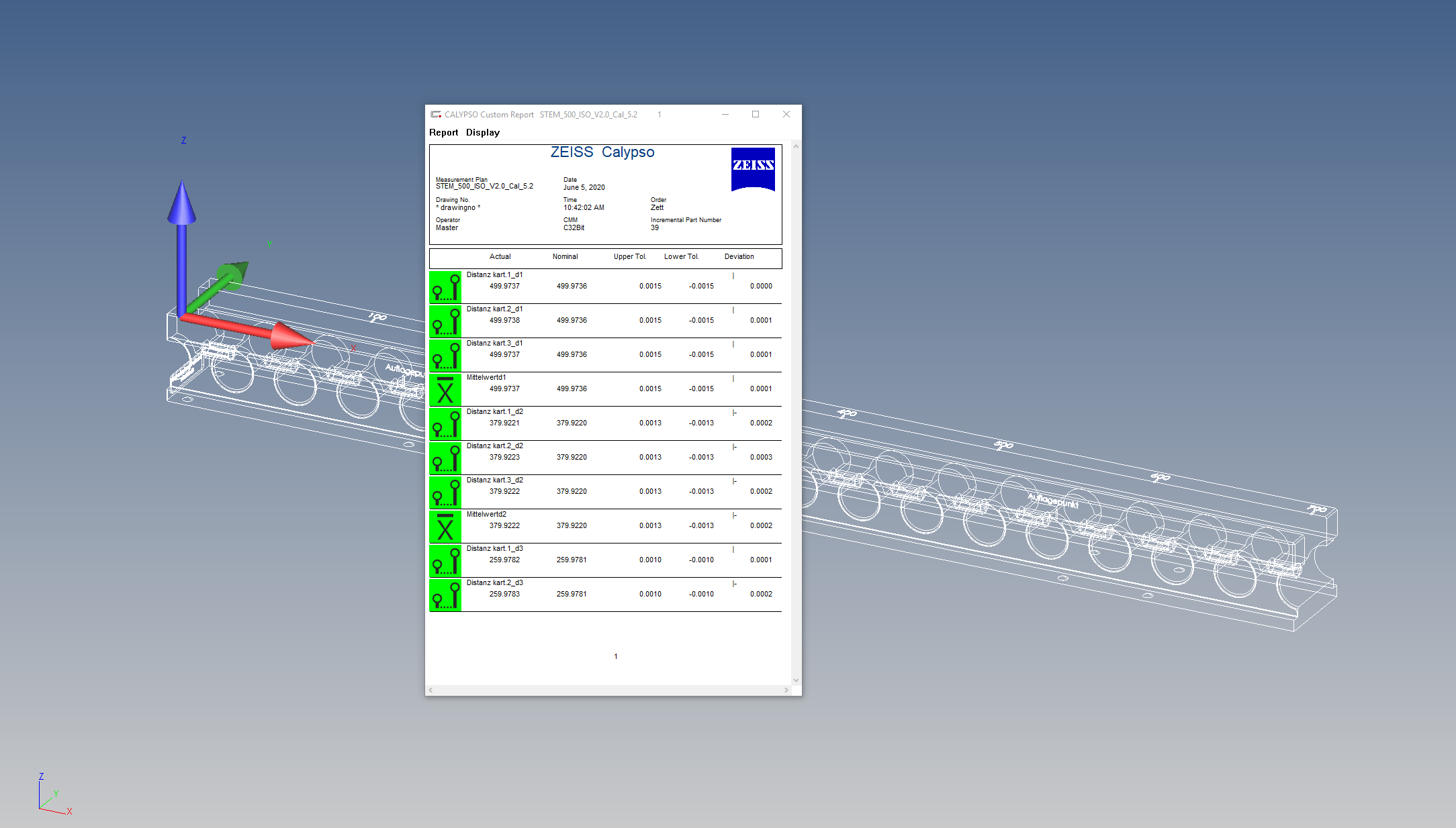Maskinen har en nøyaktighet på 0,0005 mm og kan måle gjenstander opp mot B 900 x L: 1300 x H:700 mm. Målemaskinen er utstyrt med temperatur prober i tillegg til å være plassert i et godt temperaturstyrt målerom.