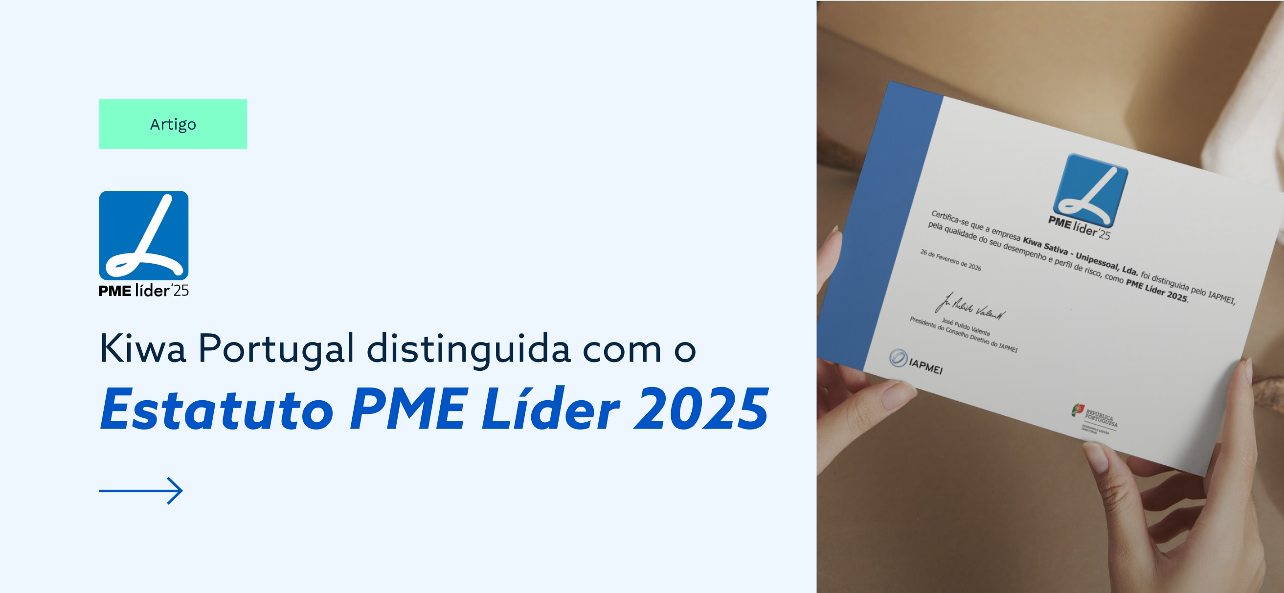 A Kiwa Portugal, através da Kiwa Sativa, foi distinguida com o Estatuto PME Líder 2025, um reconhecimento que evidencia a qualidade do desempenho da empresa, a solidez do seu perfil de risco e o contributo contínuo para a economia nacional.