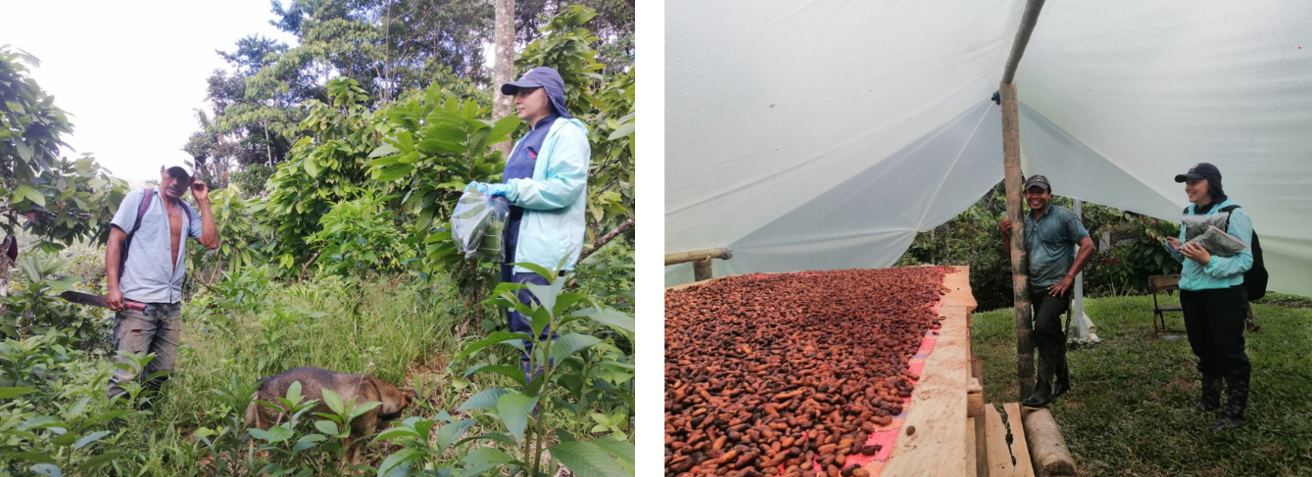 En algunos casos, los productores realizan el beneficio del cacao (fermentación y secado) en sus propias fincas, para lo cual disponen de infraestructura adecuada, como marquesinas. Además, Kiwa auditó las 3 centrales de beneficio y los 5 puntos de compra y almacenamiento ubicados en Puerto Asís, Valle del Guamuez, Orito y el Resguardo Indígena Yunguillo, en el municipio de Mocoa.