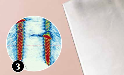 På avläsningsinstrumentet kan provningsingenjören tydligt se positionen och storleken på eventuella defekter i färgbilder eller i 3D.