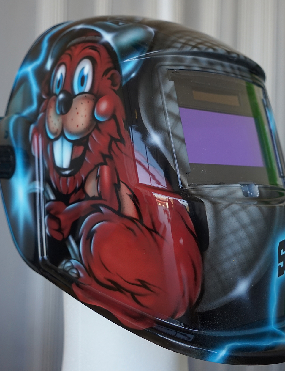 Glada vinnare av specialframtagen svetshjälm