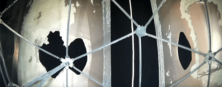 När ledskenorna i toppen på reaktorn skulle inspekteras, ca 25-30 meter upp, så skickade Kiwas drönarförare in drönaren genom en lucka i botten på reaktorn, hela vägen upp. När man tittade på gasfördelningsplåtarna så lät man drönaren istället ta vägen in genom en lucka i toppen av reaktorn.