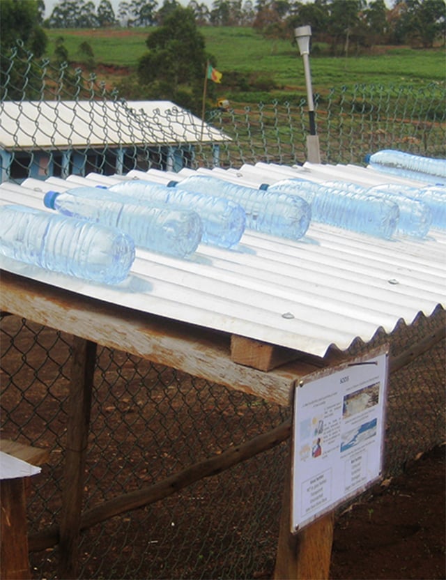 Han berättar att metoden kortfattat går ut på att fylla en PET-flaska med vatten, lägga ut den i solen och låta solens UV-ljus rena vattnet.