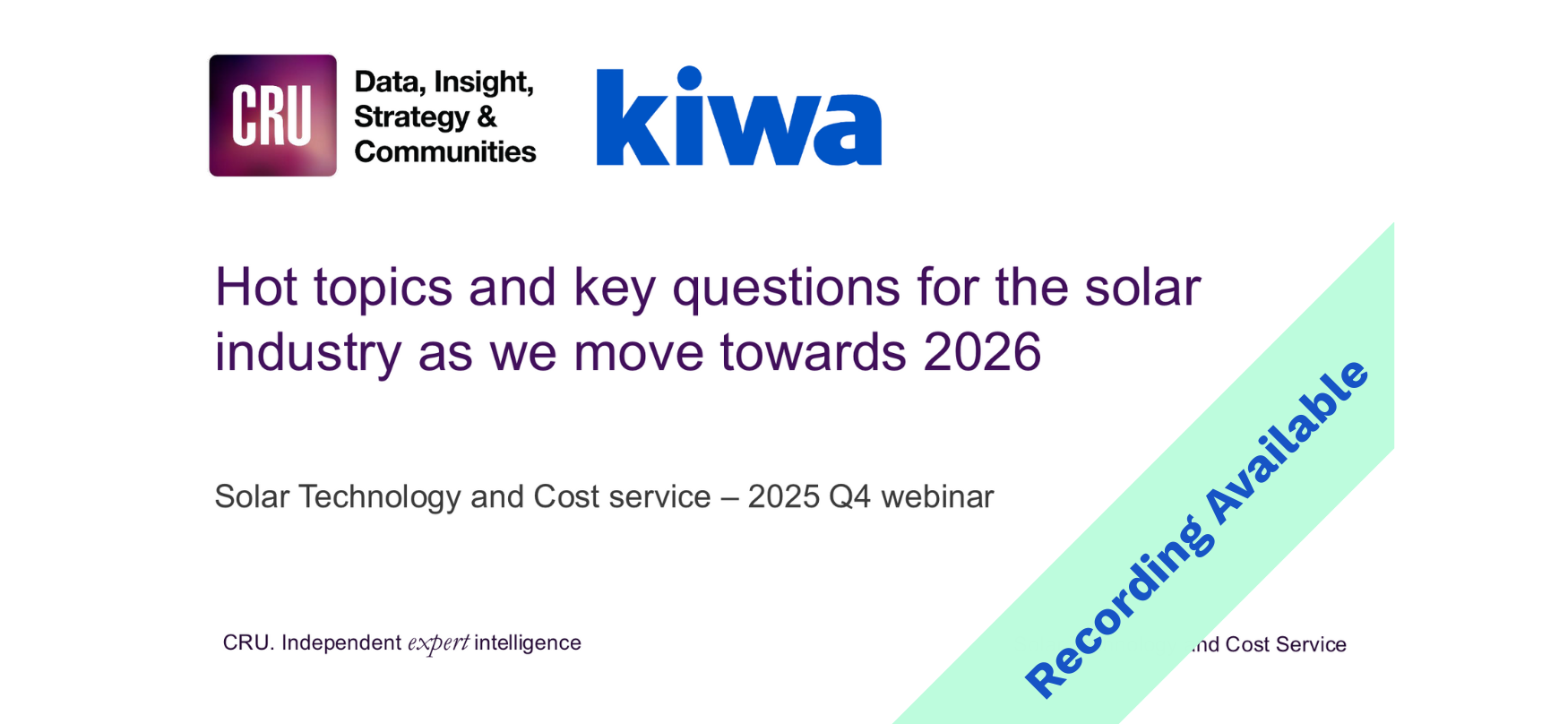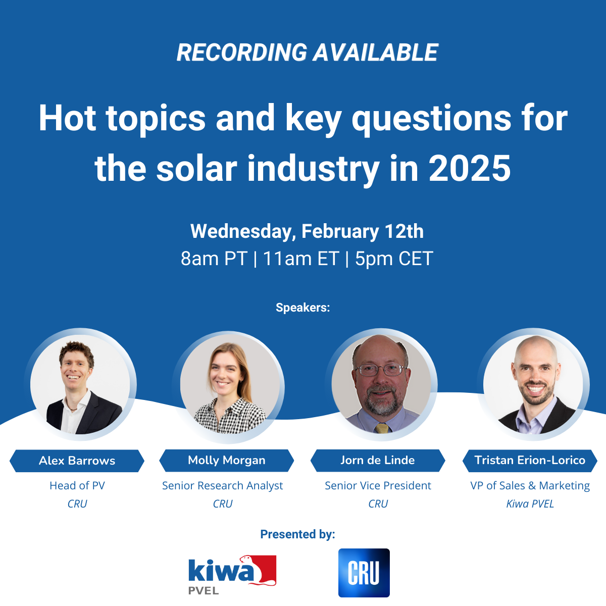 October 29th, 2025. Watch the Recording. Kiwa PVEL and CRU present an overview of our Q4 Solar Technology and Cost (STAC) service. Every quarter, the STAC service provides report subscribers with an update on PV manufacturing and module costs, including pricing outlooks, updated import/export data, and regional policy considerations.