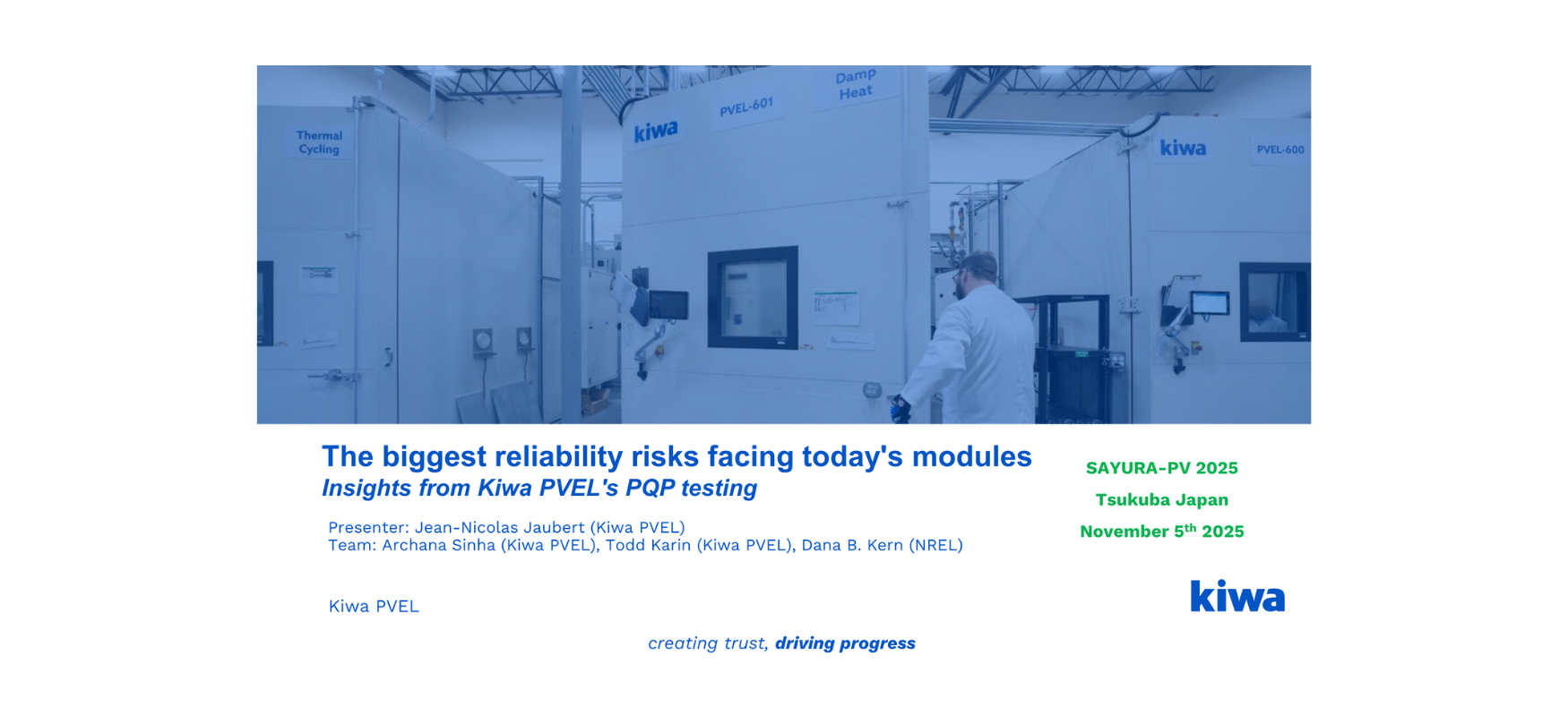 Nov 5, 2025. Kiwa PVEL's Jean-Nicolas Jaubert, Director of China Operations, delivered a presentation on emerging reliability trends at the SAYURI-PV 2025 Event in Japan.