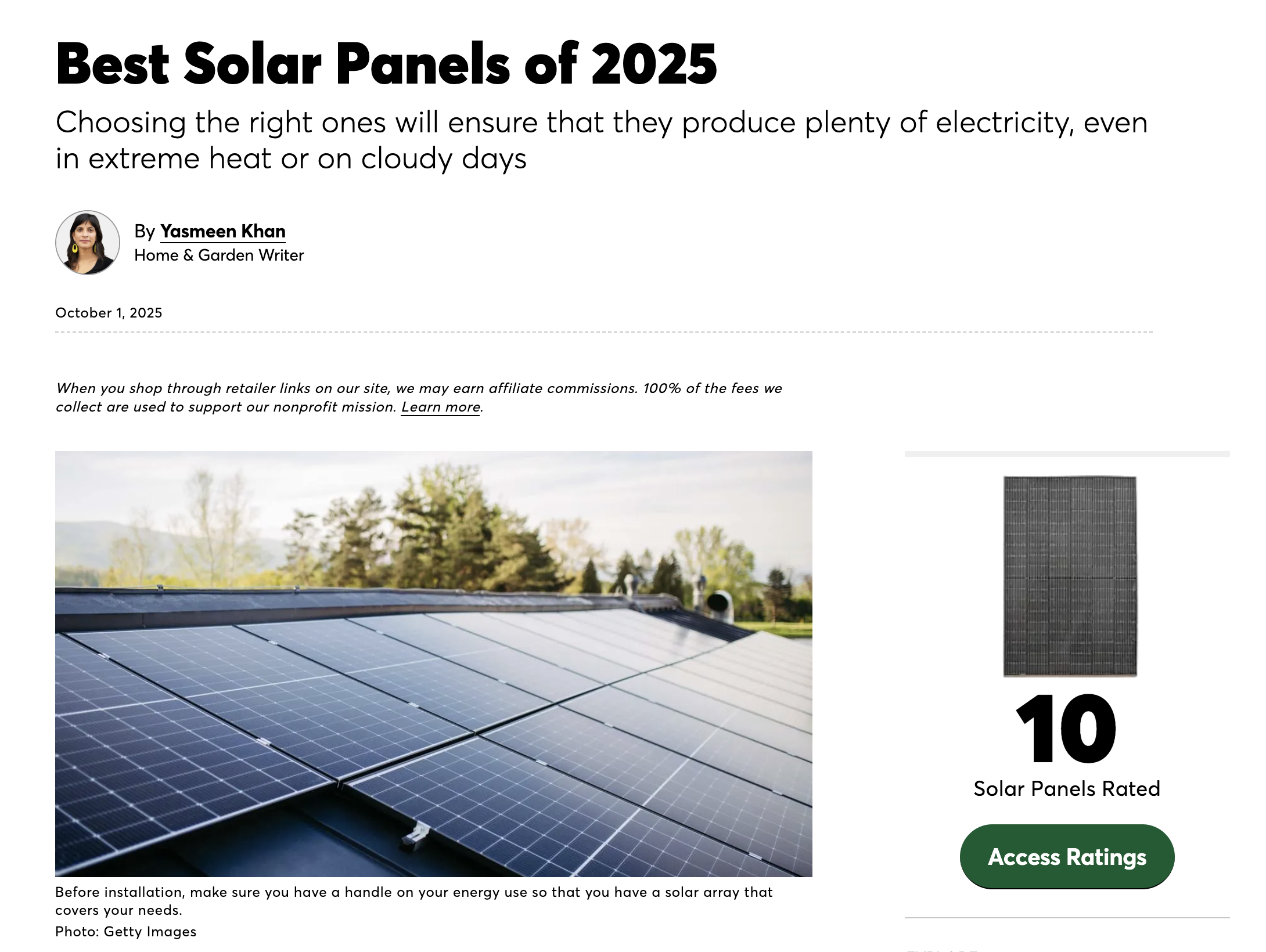 October 1, 2025. Kiwa PVEL's contributes to Consumer Reports' "Best Solar Panels of 2025" to test 10 popular solar panels.