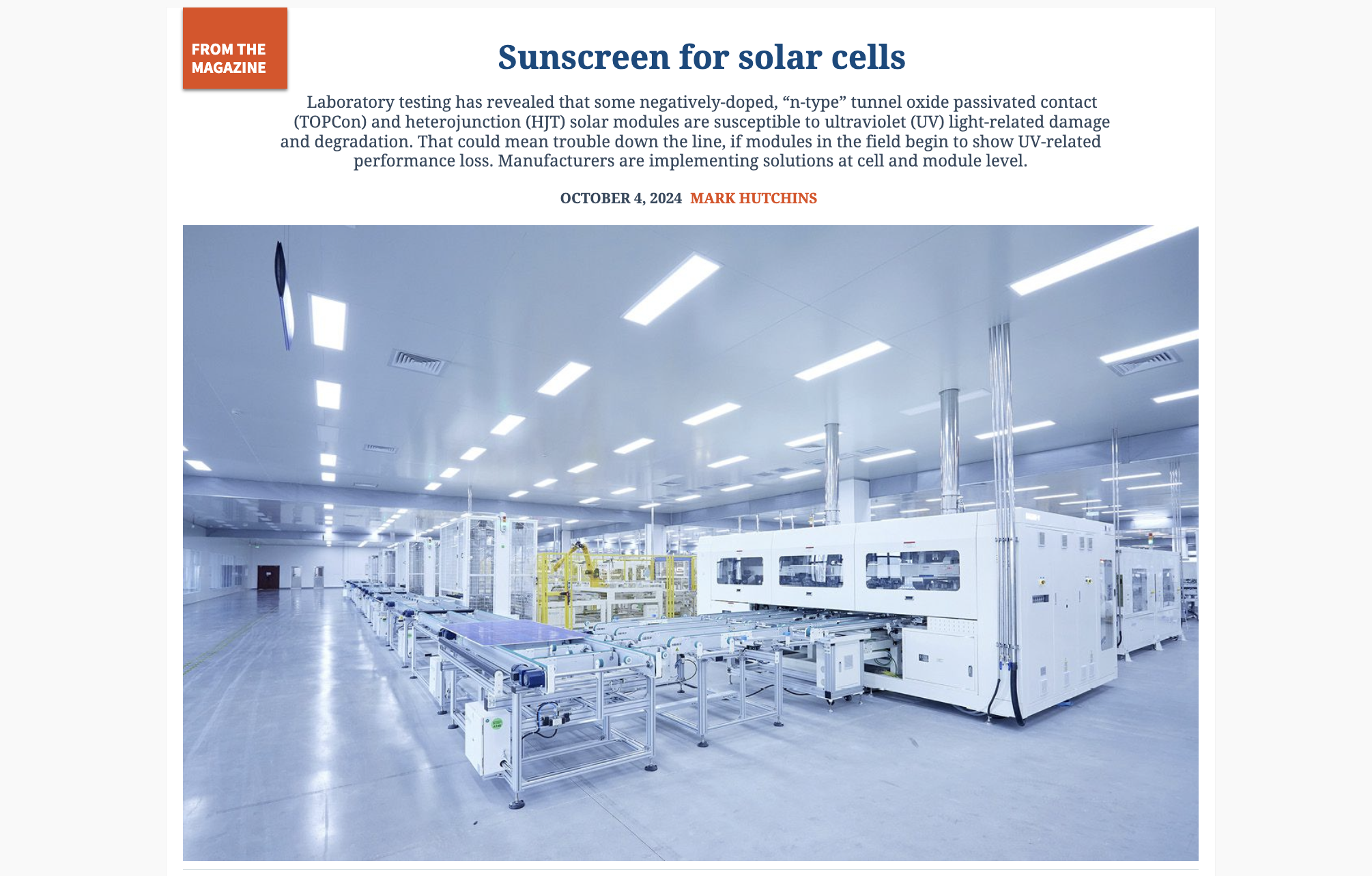 Oct 4, 2024. Read the interview with Kiwa PVEL's Tristan Erion-Lorico and Archana Sinha, PhD about UVID concerns in solar modules.